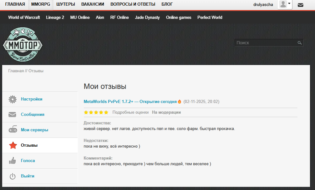 - Никнейм вашего персонажа / номер счета в Личном кабинете: drulyascha \ 1047